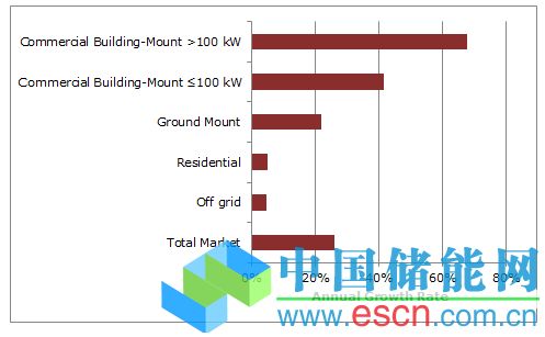 中國(guó)儲(chǔ)能網(wǎng)訊:盡管地面公用事業(yè)項(xiàng)目主導(dǎo)了2013年的美國(guó)市場(chǎng),并仍將占據(jù)2014年市場(chǎng)需求的大部分,但是商業(yè)建筑應(yīng)用預(yù)計(jì)將出現(xiàn)更強(qiáng)勁的增長(zhǎng)。