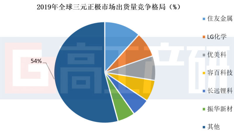 1)住友金屬、優(yōu)美科、LGC在三元正極材料領域分別供應松下、SDI、SKI以及LGC,2019年受國外新能源汽車市場帶動,頭部電池企業(yè)配套的三元正極材料生產(chǎn)企業(yè)出貨量得以提升;