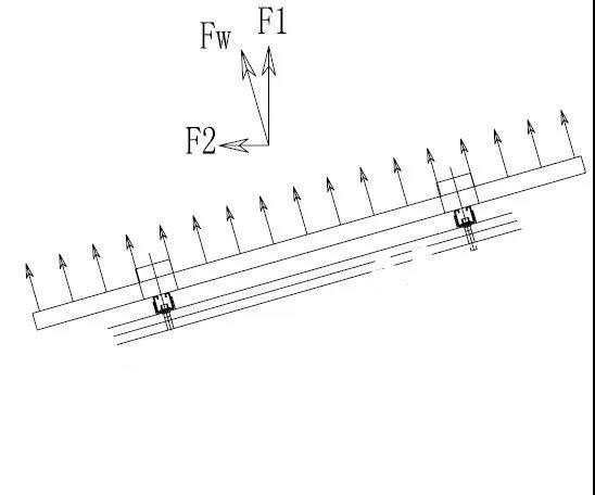 經(jīng)過計(jì)算,垂直于光伏組件表面的上吸風(fēng)力標(biāo)準(zhǔn)值約Fw=71.008kN。根據(jù)角度關(guān)系計(jì)算,在逆風(fēng)時(shí)產(chǎn)生的豎向吸力F1= cos(20°)xFw=66.726 kN≈6.7噸;逆風(fēng)時(shí)最大Fw引起的傾覆彎矩Gw=Fwx16.75/2=595.295 kN·m;由于基礎(chǔ)形式不能確定,所以無法試算抗滑移相關(guān)數(shù)據(jù)。
