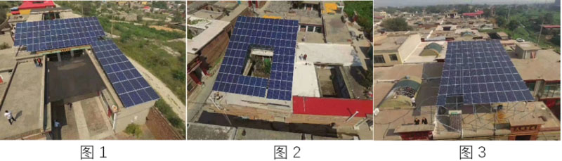 圖1中:南北兩個(gè)屋頂,南側(cè)的屋頂組件安裝角度小一些,目測(cè)約15°左右,北側(cè)的屋頂組件安裝角度明顯大很多,約35°左右。