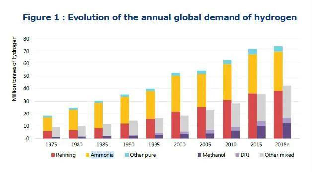 報告指出,目前,全球每年有約7000萬噸氫氣的需求,歐盟約占全球氫需求的9%。其中,占比最多的是燃料的精煉,其次是用于農(nóng)業(yè)、礦業(yè)和工業(yè)用途的氨和甲醇的生產(chǎn)。同時,這些與“經(jīng)濟脫碳”無關(guān)的氫用途的消費量一直在不斷增長。
