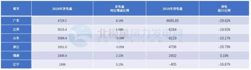 表2:2018-2019海上風(fēng)電發(fā)展大省的發(fā)電量和用電量對(duì)比