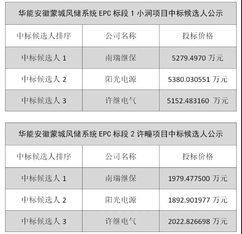 經(jīng)過(guò)一個(gè)多月的激烈角逐,華能安徽蒙城縣風(fēng)儲(chǔ)EPC招標(biāo)終于有了結(jié)果。