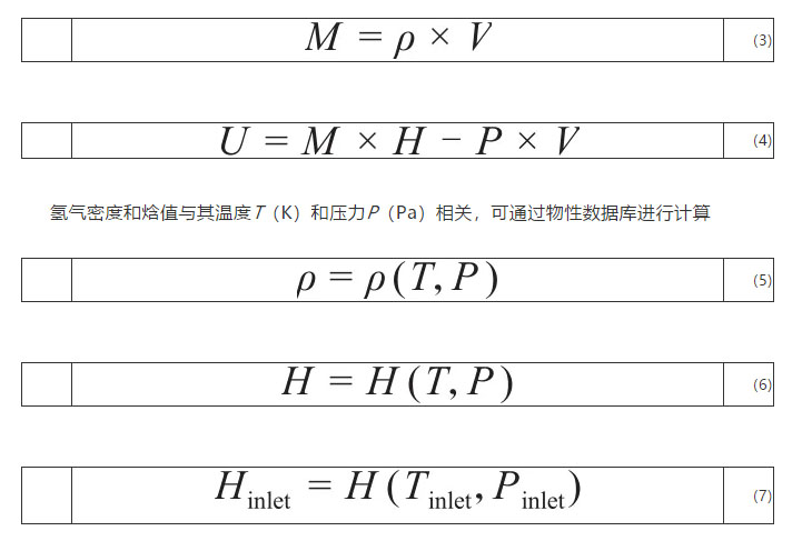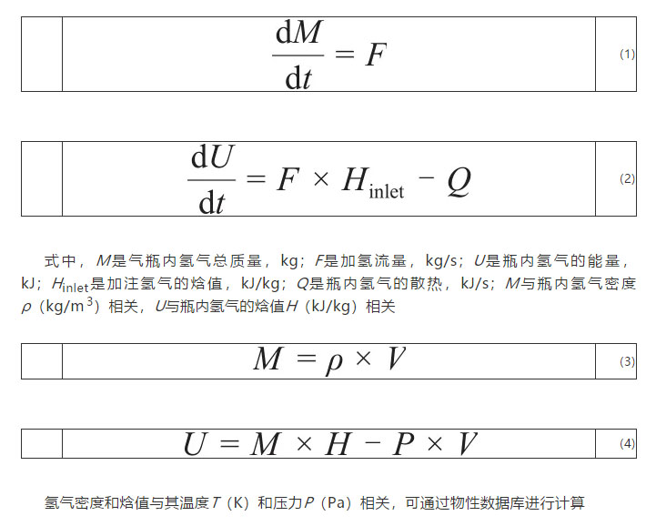 采用0維氫氣模型和1維儲(chǔ)氫瓶壁面模型對(duì)加氫過程進(jìn)行建模。對(duì)儲(chǔ)氫瓶?jī)?nèi)氫氣進(jìn)行質(zhì)量與能量衡算,存在如下關(guān)系方程