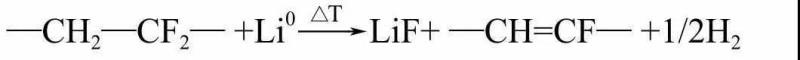 在更高溫度下,負(fù)極表面失去了SEI膜的保護(hù),嵌入負(fù)極的鋰將與電解液溶劑直接反應(yīng)有C2H4O產(chǎn)生,可能為乙醛或氧化乙烯。嵌入鋰的石墨在300℃以上與熔融的PVDF–HPF共聚物發(fā)生如下反應(yīng):