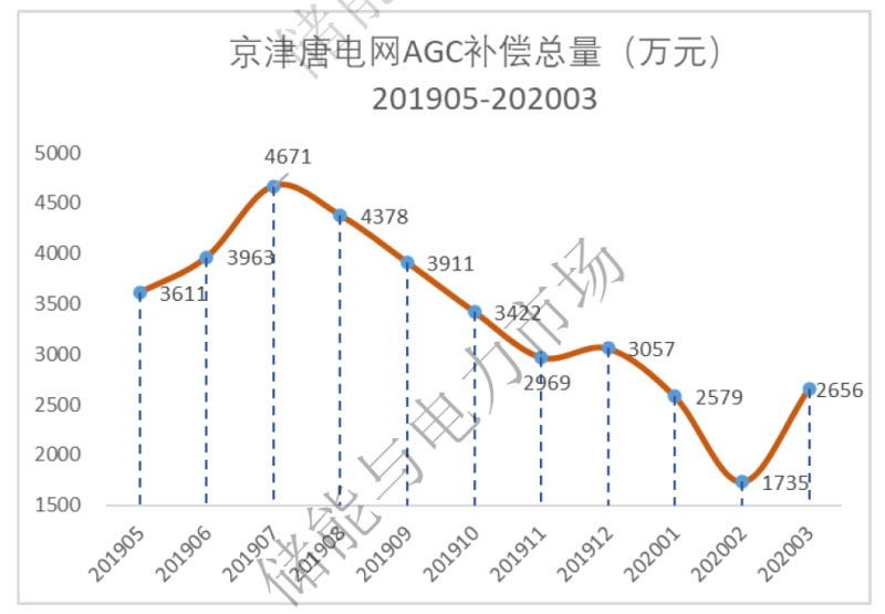 2019年5月-2020年3月間,這三個電廠的AGC輔助服務補償情況如下表所示。