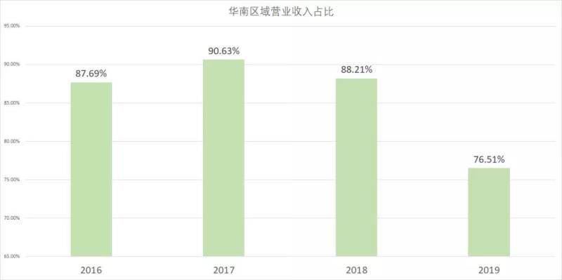 南網(wǎng)綜合能源的確是在嘗試走出南網(wǎng),只不過目前看,還很難,這從華南區(qū)域的收入占比變化情況就能看出來: