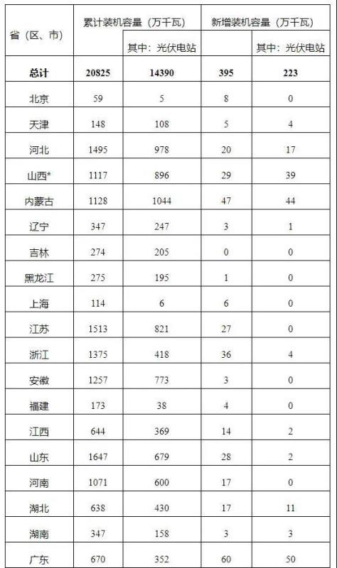 2020年一季度光伏發(fā)電并網(wǎng)運行統(tǒng)計數(shù)據(jù)