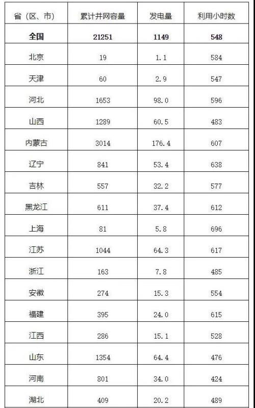 一季度風電發(fā)電量1149億千瓦時,同比增長10.4%;全國風電平均利用小時數(shù)548小時,利用小時數(shù)較高的地區(qū)是云南(988小時)、四川(882小時)和廣西(748小時)。
