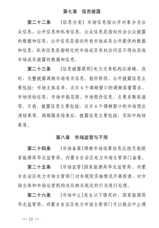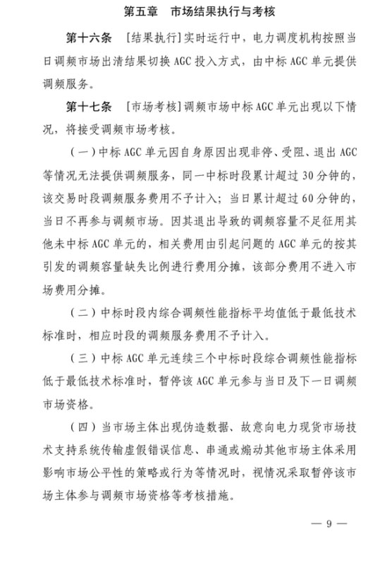 其中,《蒙西電力市場(chǎng)調(diào)頻輔助服務(wù)交易實(shí)施細(xì)則》征求意見(jiàn)稿共九章三十五條,這份征求意見(jiàn)稿與廣東市場(chǎng)現(xiàn)行規(guī)則有很多相似之處,分別對(duì)市場(chǎng)成員、交易要求、組織實(shí)施、考核、結(jié)算、信息披露及市場(chǎng)監(jiān)管等事項(xiàng)進(jìn)行了明確和界定。