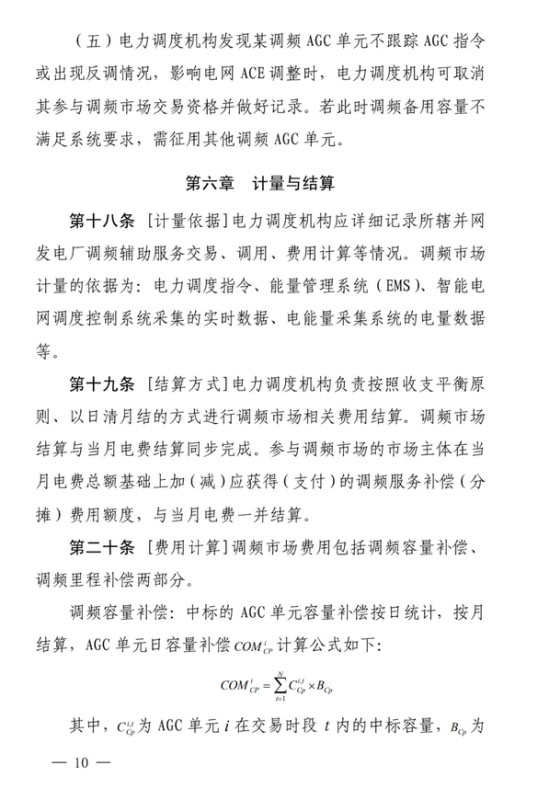 在調(diào)頻調(diào)頻容量補(bǔ)償方面,中標(biāo)的 AGC 單元容量補(bǔ)償按日統(tǒng)計(jì),按月結(jié)算。市場(chǎng)初期價(jià)格暫定為60元/MW。
