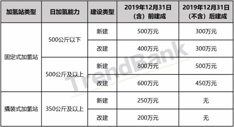2019年12月31日前動工,承諾并實現(xiàn)在2020年6月30日前建成并正式投入運營的加氫站,可按2019年12月31日前建成的補貼標準執(zhí)行。