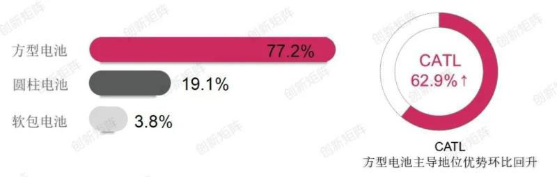 CATL市場(chǎng)占比48.8%,比3月上升5個(gè)百分點(diǎn),逐步回升到2019年50%的市場(chǎng)份額水平;