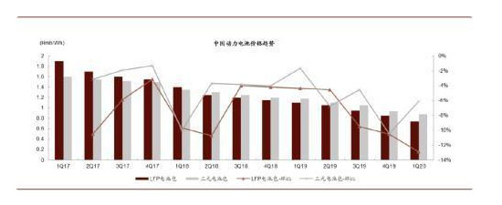 圖表: 全球動力及儲能電池均價目前穩(wěn)定較中國動力三元價格溢價約15-20%
