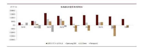 圖表: 動力電池龍頭企業(yè)電池相關業(yè)務營業(yè)利潤對比