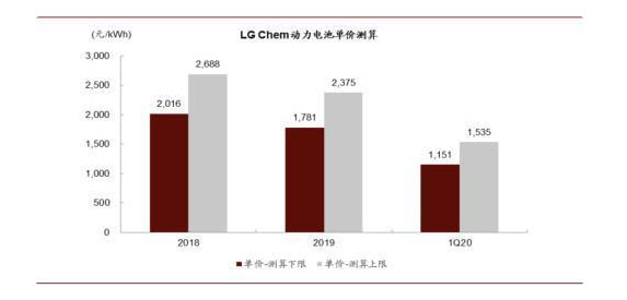 圖表:我們觀察到LG Chem動力電池價格于1Q20有較大幅度的下降