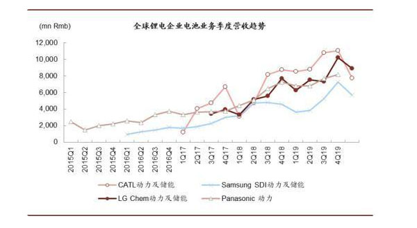 圖表: 全球主要電池企業(yè)動力及儲能營收趨勢