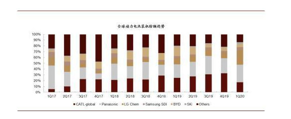 圖表: 1Q20松下與LG Chem在裝機量上超越CATL