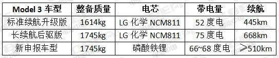 根據(jù)磷酸鐵鋰版本Model 3增加的重量,有媒體推測(cè)其帶電量為68度電左右,續(xù)航里程將超過(guò)510km。