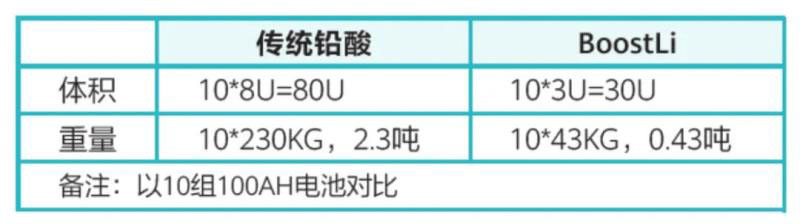 除了能解決客戶防盜問(wèn)題外,BoostLi還具有體積小、功率密度高的特點(diǎn),支持模塊化平滑擴(kuò)容,無(wú)需新增電池柜即可滿足備電擴(kuò)容需求。以100AH容量為例,BoostLi比鉛酸電池體積減少60%,重量降低80%。