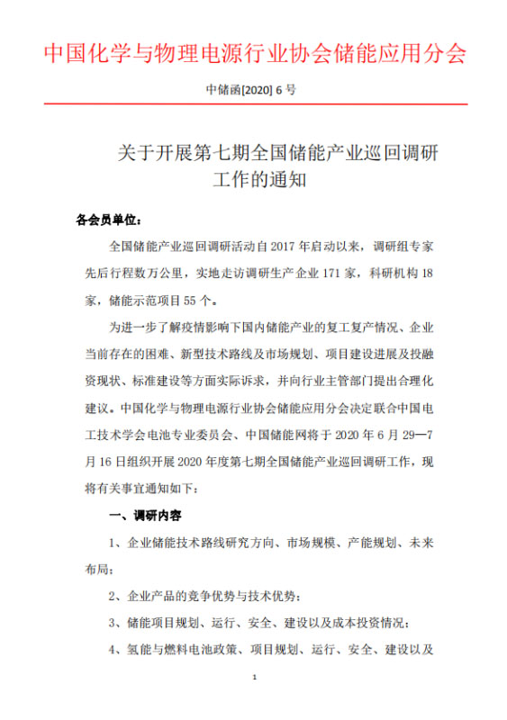 關(guān)于開展第七期全國儲能產(chǎn)業(yè)巡回調(diào)研工作的通知