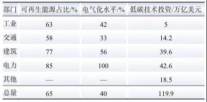 表2 2050能源轉(zhuǎn)型場(chǎng)景下終端用能部門(mén)的可再生能源電氣化水平與低碳投資需求(2015—2050)