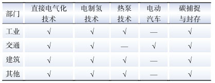 表1 2050能源轉(zhuǎn)型場(chǎng)景中的可再生能源電氣化技術(shù)路徑