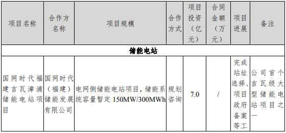 近日,永福股份在互動易回復(fù)投資者問題時表示,目前公司儲能應(yīng)用項目累計開發(fā)容量超過100MWh,涉及大型儲能電站、風(fēng)光儲微電網(wǎng)、“三站合一”變電站和園區(qū)綜合能源示范工程等實際案例,并且目前正在開展大型儲能電站的前期工作。而5月18日永福股份最新公告顯示,目前正在開展的大型儲能電站的前期工作主要有兩個項目,都來自國網(wǎng)時代福建吉瓦級儲能項目。