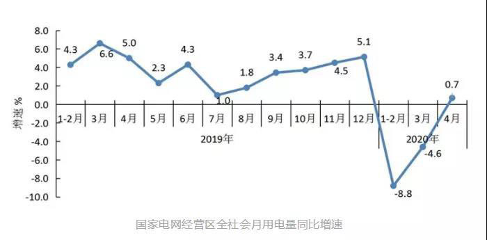 日前,國家統(tǒng)計局和國家能源局相繼發(fā)布今年4月份國民經(jīng)濟運行數(shù)據(jù)和全社會用電量數(shù)據(jù),全社會用電量增速實現(xiàn)由負轉(zhuǎn)正,多項經(jīng)濟運行指標繼續(xù)好轉(zhuǎn),釋放出經(jīng)濟社會發(fā)展正加快恢復(fù)的明顯信號。4月份,國家電網(wǎng)經(jīng)營區(qū)全社會用電量同比增長0.7%,今年以來首現(xiàn)月度正增長,國網(wǎng)能源研究院有限公司專家對相關(guān)用電數(shù)據(jù)進行具體解析——