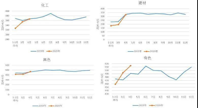 圖3 2019、2020年重點(diǎn)行業(yè)分月用電量情況