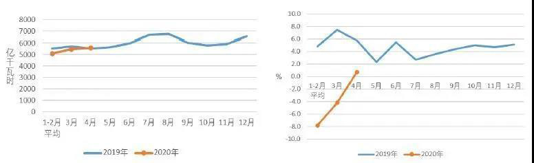 圖1 2019、2020年分月全社會(huì)用電量及其增速