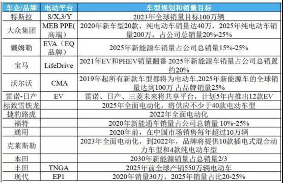 包括大眾、戴姆勒、寶馬、通用、豐田等幾乎所有的車企都給出了明確的電動化信號,且都制定了清晰的目標。宏大的目標對于動力電池的需求自然水漲船高。