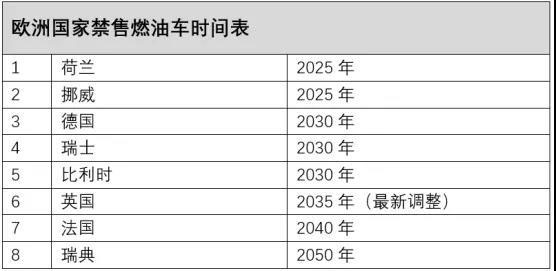 一是各國明確的禁售燃油車時間表; 二是2020年碳排政策啟動考核;三是包括德國在內的多個歐盟國家確定補貼延長至2022年之后,且刺激力度對于消費者極具吸引力;四是各大車企在電動化領域明確轉型,并都發(fā)布了頗具競爭力的車型。