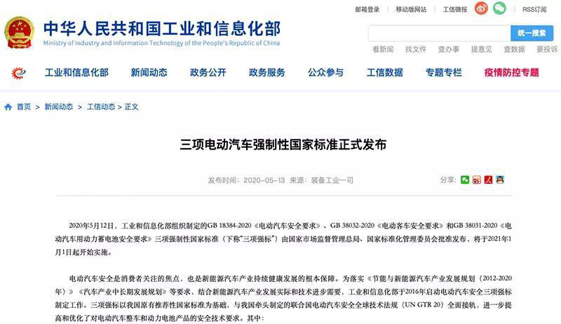 ▲工信部頒布了一系列電動汽車強(qiáng)制標(biāo)準(zhǔn)