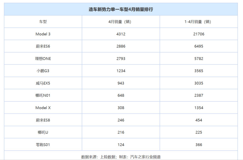 如果在中國獨資的特斯拉也稱得上“新勢力”的話,特斯拉Model 3則為造車新勢力單一車型銷量第一名,其銷量達(dá)4312輛;由于特斯拉近期頻繁調(diào)價造成用戶持幣觀望,其4月上險數(shù)據(jù)環(huán)比3月大幅下滑63.8%。即便如此,特斯拉的單一車型銷量表現(xiàn)仍一騎絕塵,可見,我國新創(chuàng)車企在打造爆款車型方面仍有很長的路要走。