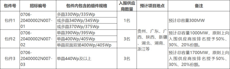 5月27日,中核集團(tuán)2020年第一批組件集采今日開標(biāo),招標(biāo)規(guī)模共計(jì)3GW,分為三個標(biāo)段,共計(jì)24家組件企業(yè)參與投標(biāo)。具體開標(biāo)結(jié)果見下: