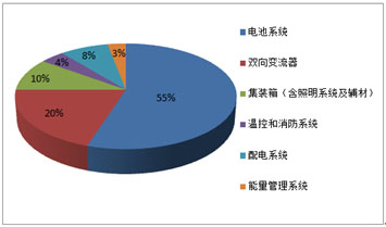 儲(chǔ)能行業(yè)發(fā)展過程中,更多人把希望寄托在降低儲(chǔ)能系統(tǒng)成本之上,認(rèn)為成本是影響儲(chǔ)能行業(yè)發(fā)展的最關(guān)鍵因素,而筆者雖然認(rèn)同適當(dāng)降低儲(chǔ)能系統(tǒng)成本有利于推動(dòng)行業(yè)發(fā)展,但降低成本絕非最核心因素。縱觀這些年儲(chǔ)能行業(yè)發(fā)展的歷程,以鋰離子電池儲(chǔ)能系統(tǒng)為例,系統(tǒng)的硬件物理成本快速下降,即使近至今年上半年,在風(fēng)電場配置儲(chǔ)能的應(yīng)用場景,短短幾個(gè)月時(shí)間里,中標(biāo)價(jià)格即由2.15元/Wh(PC價(jià)格)降至1.699元/Wh(EPC價(jià)格),降價(jià)之快降幅之大令人咋舌。雖然不排除受疫情這個(gè)特殊因素影響,個(gè)別企業(yè)舍利潤換取現(xiàn)金流,但整個(gè)儲(chǔ)能行業(yè)的降價(jià)趨勢由此可見一斑。讓我們以1C倍率集裝箱儲(chǔ)能系統(tǒng)為例來分析一下系統(tǒng)物理硬件成本比例,其成本分布大概如下餅狀圖。