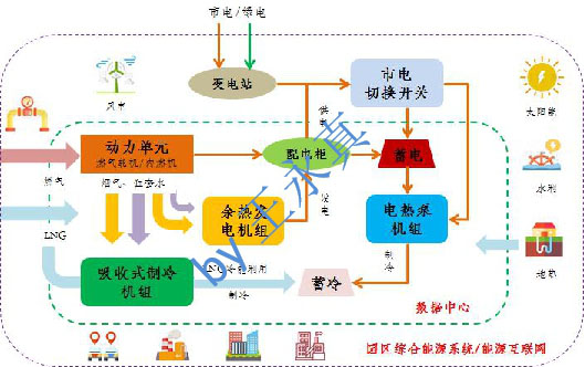 (二)打造基于多能互補的數(shù)據(jù)中心能源供應的多元融合模式。因地制宜,因時制宜,研究和推廣自建綠電、直購綠電、采購綠色電力證書以及電力現(xiàn)貨市場化交易等方式在數(shù)據(jù)中心供能上的應用。積極倡導高壓直流供電技術(shù)在數(shù)據(jù)中心的推廣示范,提高綠電供應的可靠性、降低綠電供應的投資運維成本,全方位培育綠電在數(shù)據(jù)中心的應用路徑。架構(gòu)基于能量綜合梯級利用的聯(lián)供系統(tǒng)的設計及評價體系,特別是電力緊張區(qū)域,優(yōu)化數(shù)據(jù)中心天然氣的市場供應價格及天然氣管道配氣費,合理設計天然氣聯(lián)供系統(tǒng)在數(shù)據(jù)中心能源系統(tǒng)的容量占比及運行策略。應充分結(jié)合自然或免費冷源,因地制宜,鼓勵利用LNG汽化吸熱過程、山區(qū)溶洞低溫空氣、江河湖海低溫水源等用于滿足數(shù)據(jù)中心散熱需求的應用及示范。應立足數(shù)據(jù)中心當?shù)刭Y源稟賦及負荷特性,構(gòu)建綠色電力、天然氣聯(lián)供、自然冷源以及光熱、儲能等技術(shù)的數(shù)據(jù)中心多能互補能源系統(tǒng),推動綠電與其他能源在數(shù)據(jù)中心供能上的多元互動的潛力及方式。
