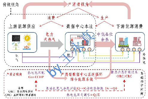 (一)探索基于余熱回收的產(chǎn)消型數(shù)據(jù)中心綜合能源系統(tǒng)的能源消費與供應路徑。深入洞悉不同氣候區(qū)及不同性能數(shù)據(jù)中心的能耗及能效特征,鼓勵壓縮式熱泵、高效換熱、吸收/吸附式制冷、相變蓄能與水蓄能等中低品位熱能高效回收與利用技術(shù)在數(shù)據(jù)中心余熱回收(供暖、加熱、甚至制冷等)上的應用推廣,并探索其低成本、規(guī)?;茝V的技術(shù)路線及商業(yè)模式。有條件的地區(qū),特別是經(jīng)濟發(fā)達以及能源稟賦不足地區(qū),應系統(tǒng)考慮數(shù)據(jù)中心能源系統(tǒng)上下游用戶的能源供應與消費的時空互補特性,積極構(gòu)建及培育“產(chǎn)消型”數(shù)據(jù)中心綜合能源系統(tǒng)及模式(產(chǎn)消型:能源生產(chǎn)與消費的有機結(jié)合)。非常有必要將產(chǎn)消型數(shù)據(jù)中心能源系統(tǒng)的規(guī)劃納入所在區(qū)域及園區(qū)的冷熱電氣等能源系統(tǒng)的規(guī)劃,統(tǒng)一施策,做好數(shù)據(jù)中心及其周邊園區(qū)能源供應與消費的統(tǒng)籌規(guī)劃和共建共贏。