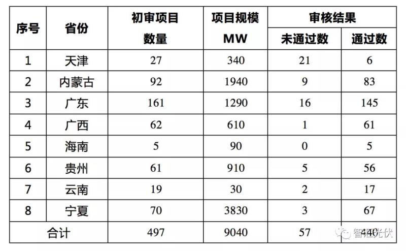 日前,可再生能源電價(jià)附加補(bǔ)貼清單申報(bào)項(xiàng)目復(fù)核工作開展情況公布,截止5月29日,天津、內(nèi)蒙、廣東、廣西、海南、貴州、云南、寧夏共8個(gè)省市已經(jīng)完成一部分項(xiàng)目的相關(guān)工作,共涉及497個(gè)可再生能源項(xiàng)目,其中光伏295個(gè)項(xiàng)目總規(guī)模達(dá)9040MW。