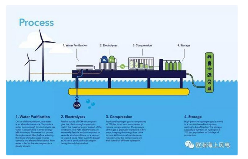 項目名稱為NortH2,小編理解為North+H2,即北海的制氫項目。該項目計劃到2030年在北海建成3-4GW的海上風(fēng)力發(fā)電能力,完全用于制造綠色氫氣,并在荷蘭北部沿岸的埃姆斯哈文或者近海區(qū)域建造一座大型電解制氫站。項目預(yù)計在2027年實現(xiàn)首次送電,并計劃到2040年在區(qū)域達成10GW海上風(fēng)電裝機、年產(chǎn)80萬噸綠色氫氣的目標(biāo),項目規(guī)??胺Q全球第一。
