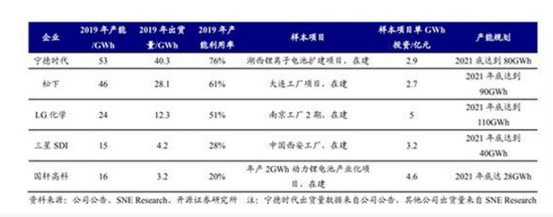 若對比全球各電池廠商產(chǎn)能利用率,此次定增對國軒高科顯得十分迫切。數(shù)據(jù)顯示,國軒高科2019年產(chǎn)能利用率僅為20%,而樣本項目單GWh投資/億元達(dá)到了4.6。