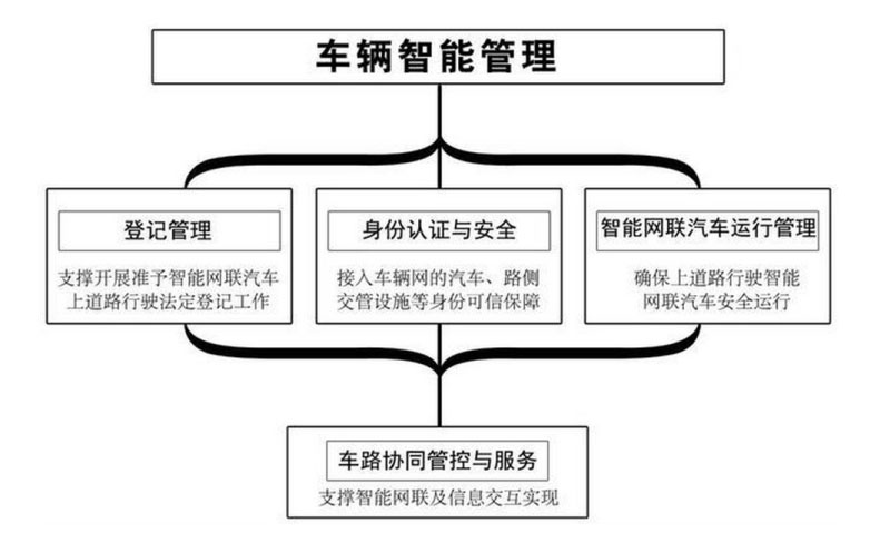 《車輛智能管理標(biāo)準(zhǔn)體系建設(shè)指南》在《國家車聯(lián)網(wǎng)產(chǎn)業(yè)標(biāo)準(zhǔn)體系建設(shè)指南(總體要求)》提出的總體框架下,以推動車聯(lián)網(wǎng)技術(shù)在公安交通管理領(lǐng)域應(yīng)用、保障車聯(lián)網(wǎng)智能網(wǎng)聯(lián)汽車運行安全為核心,提出了構(gòu)建包括智能網(wǎng)聯(lián)汽車登記管理、身份認(rèn)證與安全、道路運行管理、車路協(xié)同管控與服務(wù)等方面標(biāo)準(zhǔn)在內(nèi)的標(biāo)準(zhǔn)體系,列出了標(biāo)準(zhǔn)明細(xì)。