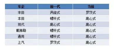 主要燃料電池汽車廠商空壓機類型對比