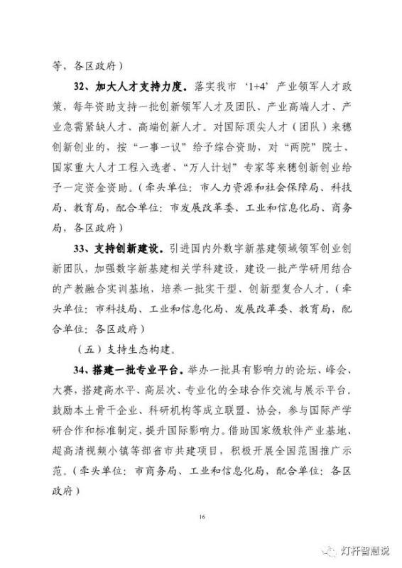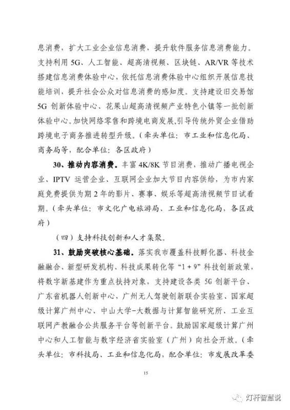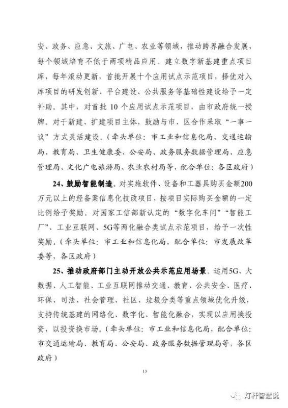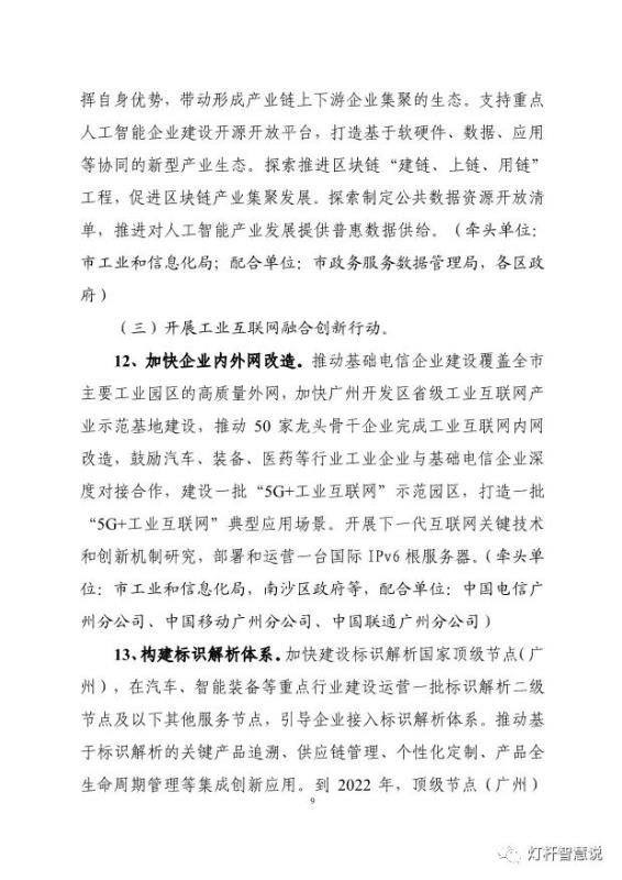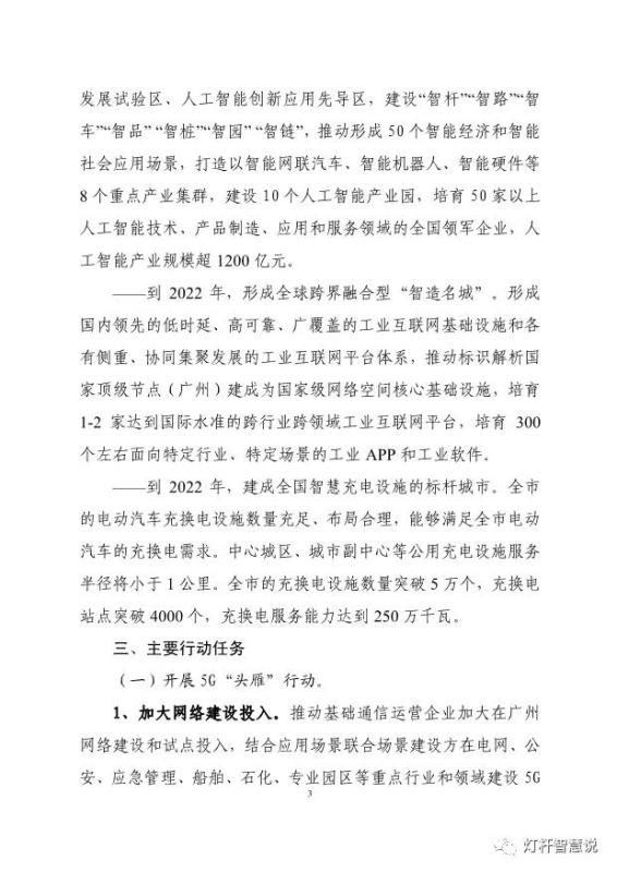 文件中列出了開展5G“頭雁”行動(dòng)、開展人工智能場(chǎng)景構(gòu)建行動(dòng)、開展工業(yè)互聯(lián)網(wǎng)融合創(chuàng)新行動(dòng)、開展充電基礎(chǔ)設(shè)施提升行動(dòng)四大類主要行動(dòng)任務(wù),其中包括22點(diǎn)內(nèi)容。