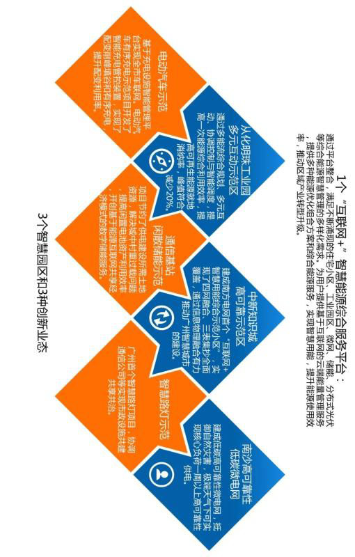 廣州的地圖是一個從上到下狹長的結(jié)構(gòu),就像一條上頭下尾奮力游動的鯨魚。從北到南,鯨魚的頭、身、尾依次分布著從化明珠工業(yè)園多元互動示范區(qū)、中新知識城高可靠示范區(qū)、南沙高可靠性低碳微電網(wǎng)3個智慧園區(qū),分別代表了傳統(tǒng)園區(qū)升級、智慧新城和南沙自貿(mào)區(qū)的鮮明特點。通過差異化方案的提出,形成具有引領(lǐng)性、示范性、可復制、可推廣的規(guī)劃范例。
