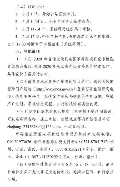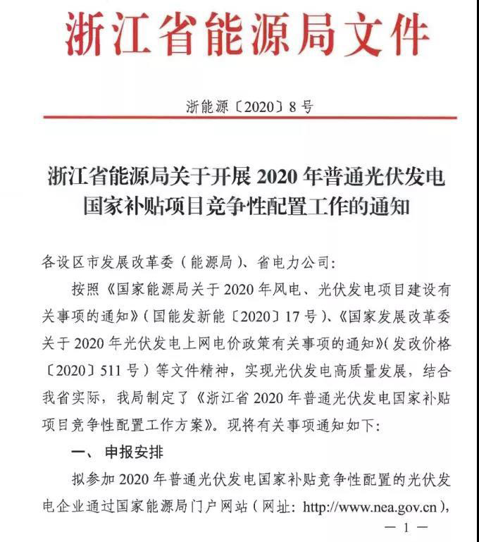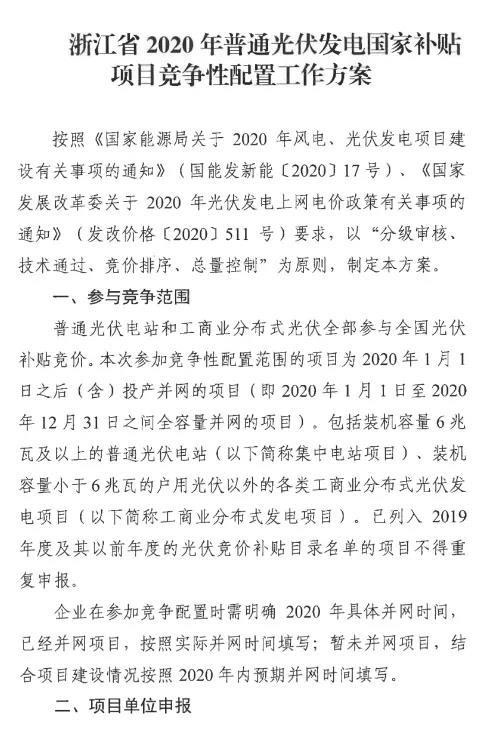 6月3日,浙江省能源局發(fā)布2020年光伏發(fā)電國家補貼競爭性配置工作的通知。即日起開始競價申報,6月15日補貼競價申報截止。