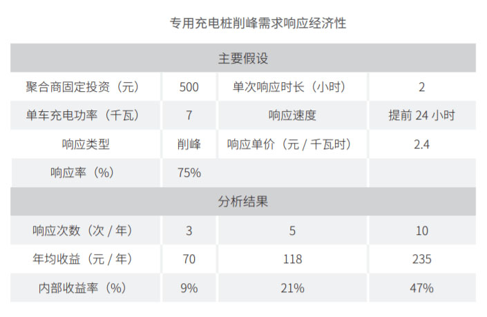 專用樁的需求響應(yīng)參與度明顯高于私樁。一方面,專用樁擁有與私樁相似的車輛接入時長優(yōu)勢。另一方面,專用樁比私樁更便于開展集中充電行為管控,其參與需求響應(yīng)的可靠性也相對更高。在經(jīng)濟性方面,目前上海對削峰需求響應(yīng)的補償單價較高,約為填谷補償?shù)膬杀?。辦公地專用樁具有較大削峰空間,其參與需求響應(yīng)的經(jīng)濟性也相對較高。若年均響應(yīng)次數(shù)達到10次則收益率接近50%。