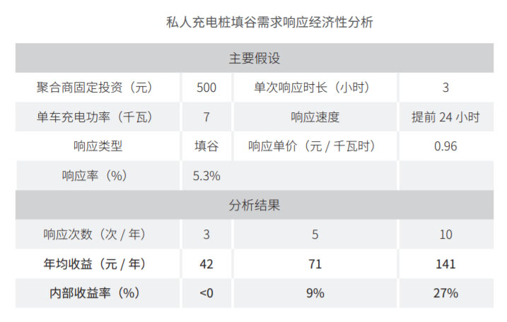 蔚來汽車充電平臺在上海安裝了約3000個私樁。響應(yīng)日當日,實際參與響應(yīng)的私樁數(shù)量為159個,占全部平臺充電樁數(shù)量的比例為5.3%。價格激勵對電動車主有較強引導效果。相比平日充電負荷,參與響應(yīng)的159個私人充電樁在響應(yīng)日填谷響應(yīng)時段的平均充電負荷是平日該時段充電負荷的7.8倍,且平均充電量也遠高于平日。也就是說,這些電動汽車車主在響應(yīng)時段集中充電。對于電動汽車車主而言,在需求響應(yīng)聚合商的充電樁投資成本固定和響應(yīng)補償單價確定的情況下,參與需求響應(yīng)的頻次決定了收益水平。當響應(yīng)次數(shù)達到10次,參與需求響應(yīng)的收益率達到27%。