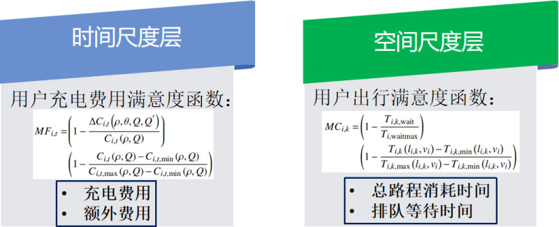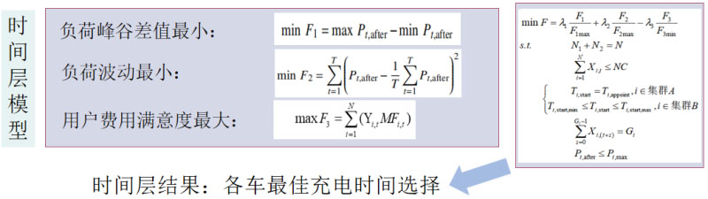 基于上述思想,建立時空雙尺度優(yōu)化模型。時間層優(yōu)化模型如圖5所示,將負荷曲線峰谷差最小和負荷波動最小都列入目標函數(shù)內(nèi)。同時,將用戶充電費用滿意度考慮在內(nèi),最大程度發(fā)揮用戶的參與度。